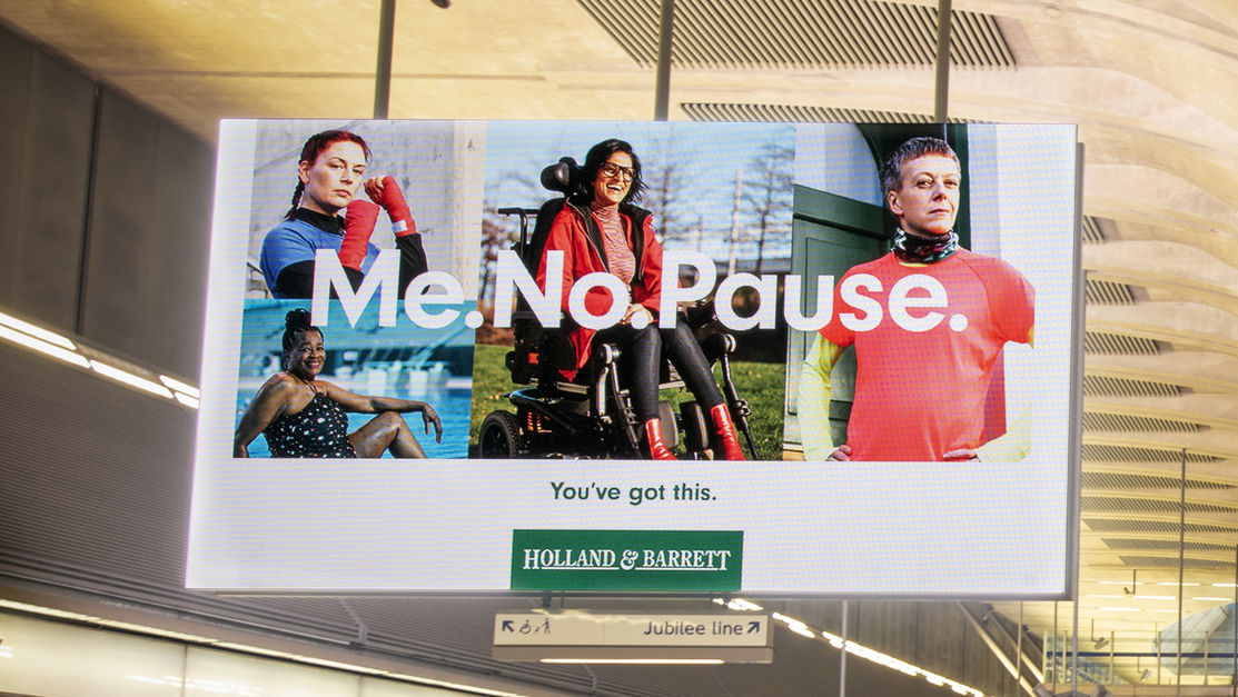 Competition winner Holland & Barrett (a health food chain) have developed a distinctive idea with a positive play on the word menopause. It is a simple, succinct and direct challenge to the menopause taboo and negative associations.