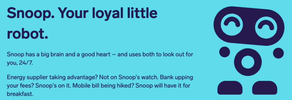In business model terms Snoop has two helpful advantages vs established comparison sites. Firstly, it can identify a much wider menu of saving opportunities and secondly it can deliver powerful personal prompts for user action. It is early days but Snoop already leverages these advantages well with a smooth set-up and engaging suggestions.