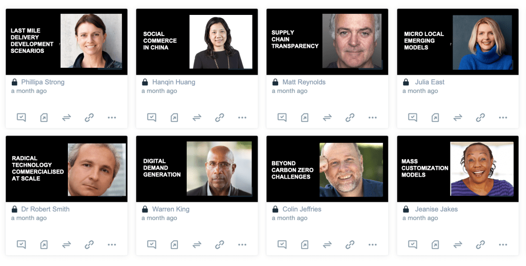 The distillation of accumulated research on trends and market developments was our foundation, but we also wanted to stretch internal perspectives with input from specialists in and outside of the organisation. Previously we had achieved this with expert guests invited to workshops but given Covid-19 we chose to curate and deploy ‘virtual bursts’ of stimulus. We specifically wanted our senior decision-makers to start by working back from an in-depth consideration of future challenges (and not today’s).