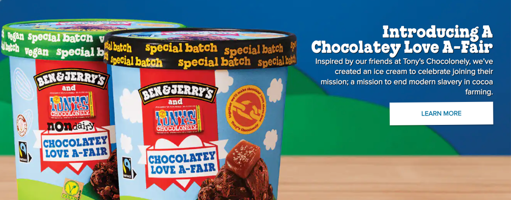 I need to declare an interest. I am a Ben & Jerry’s fan. That said, the brand’s collaboration with Tony’s to address the inequalities of chocolate sourcing and specifically slave labour is, I think, objectively brilliant.