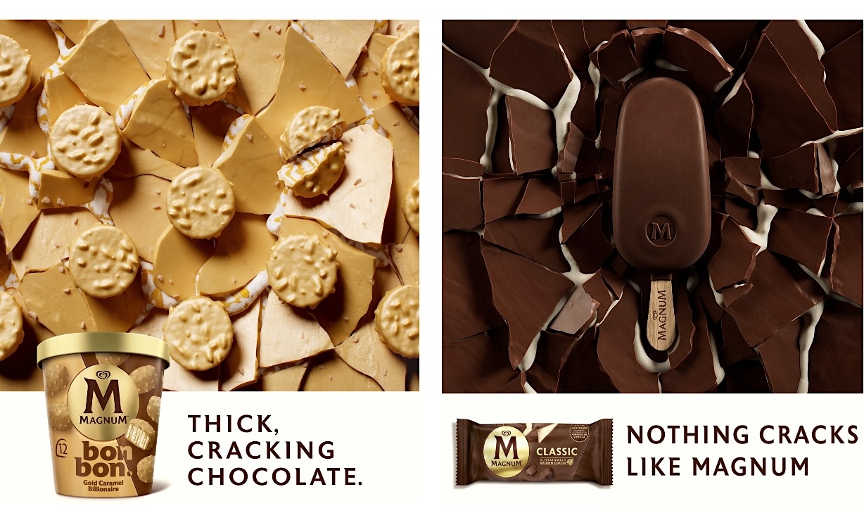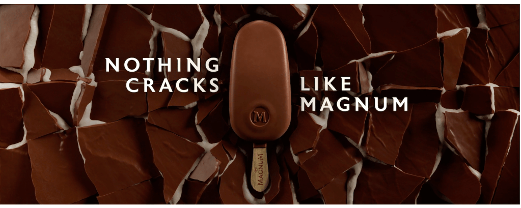 New visuals that place products on a cracked surface make a short sensory moment bigger. They dramatise and strengthen the evidence for current communication reminding us nothing cracks like Magnum.