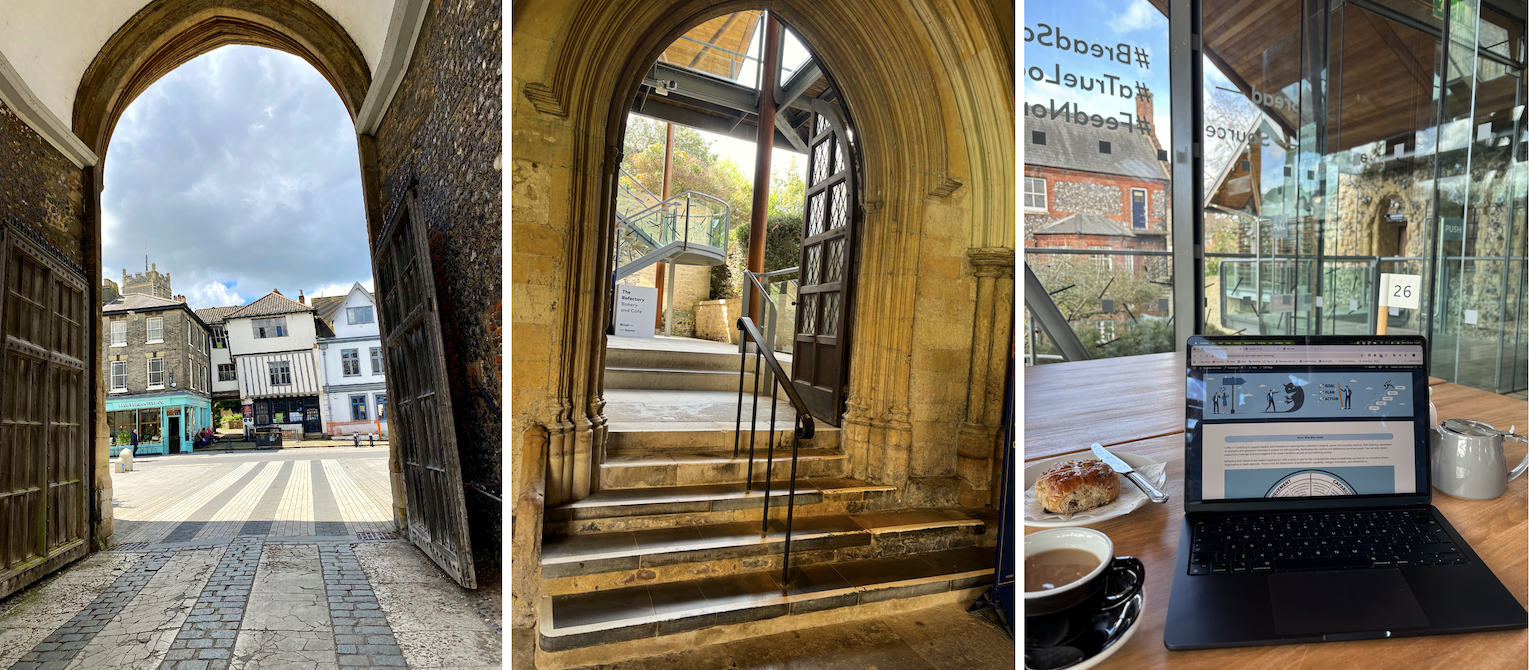 At least twice a week I walk or cycle down into the city crossing Fye Bridge (cover photo), make my way through the arched entrance into the Cathedral. I then climb the steps to the café to claim a bit of calm thinking time (above).