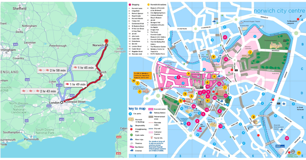 The challenge for Norwich is that a visit requires a plan. You need to travel to the eastern bottom bump of the UK. Unless you are heading to the Norfolk coast you won’t stumble on it on the way to somewhere else.